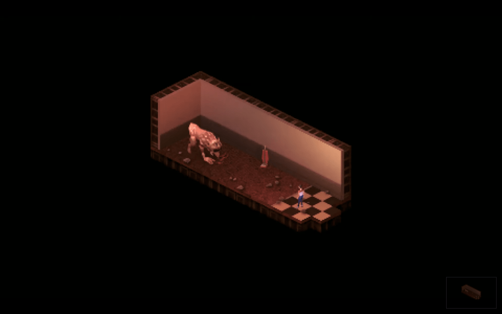 this motif, paired with the drudgery of nora’s days, her continual return to her soul-sucking job, and her emotional detachment, call to mind the erosion and endless withering i feel in my soul and body under capitalism. this, i think, is the point. nora is stuck in a job and life that are killing her, but she remains in them because they comprise the only life she knows, or even feels she deserves. these forces of slow but steady death are (literally) concretized by the figure of the gargoyle, who threatens to completely devour nora. the only way for nora to avoid being consumed by the gargoyle is to click on a mysterious link on her computer, which offers some promise of escape. while the ad attached to the link seems dubious at first, the ending of no such scene–with the gargoyle on one end of a narrow hallway, the computer on the other–that there is simply no other alternative. trust in the link, or die.